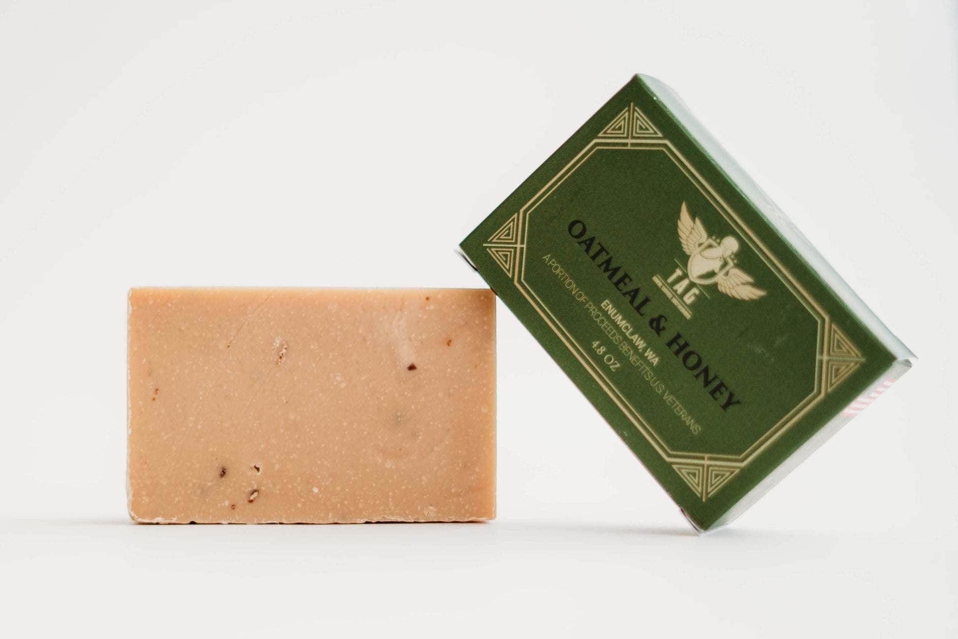 Description: Hand-crafted, cold pressed bar soap with a rich and bold lather. This cozy classic is the ideal blend oatmeal and Honey with added oatmeal as an exfoliant.